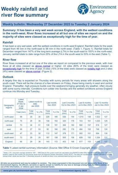 Below is a summary from the Environment Agency with recent figures from across the country.