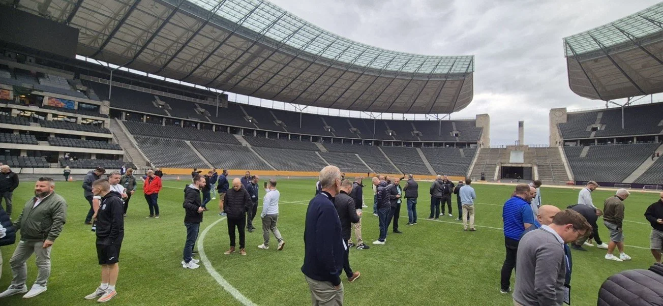 During the two-day event, we were taken to the Olympic Stadium in Berlin, a fascinating trip where we were given a guided tour of this historical venue, including the areas where the Nazi party held events in the build up to and during the 1936 Olympic games. We were allowed on to the pitch and given talks by the stadium manager.